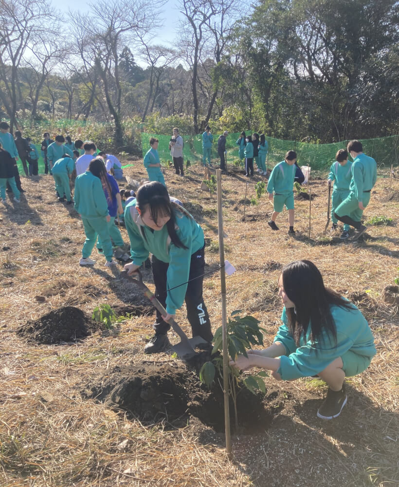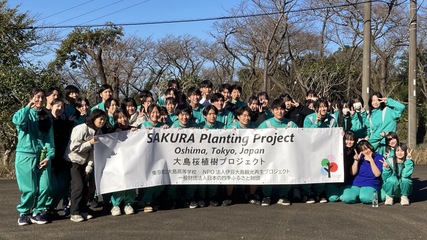 2025年11月26日、東京都の大島町にて、都立大島高等学校の生徒及び教員の皆様、NPO法人伊豆大島観光再生プロジェクトの皆様と共に、大島桜の植樹を行いました。